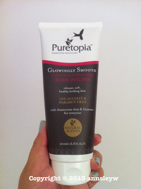 My all-time favourite body scrub is Soap and Glory's Scrub Actually (which uses sugar crystals) but Puretopia Glowingly Smooth Exfoliating & Renewing Body Polish is my current favourite. Phew. What a mouthful of a name. Touted as being 100 per cent sulphate, paraben and soap-free, it is suitable for all skin types. The body polish contains Amazonian acai berry and guarana for skin stimulation and detoxification while walnut shell gently polishes, and aloe vera soothes, clams and moisturises. It says that the body polish has a lime, lemongrass and ginger fragrance. The body polish is used to exfoliate dead skin cells, excess oils, traces of daily pollution, grime and makeup.